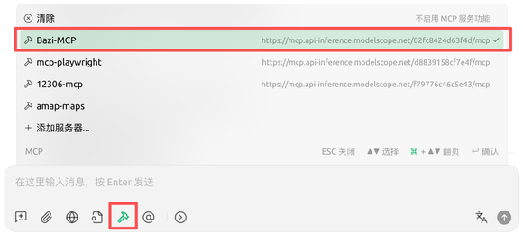 2.3.4、在对话框中选中需要的MCP工具