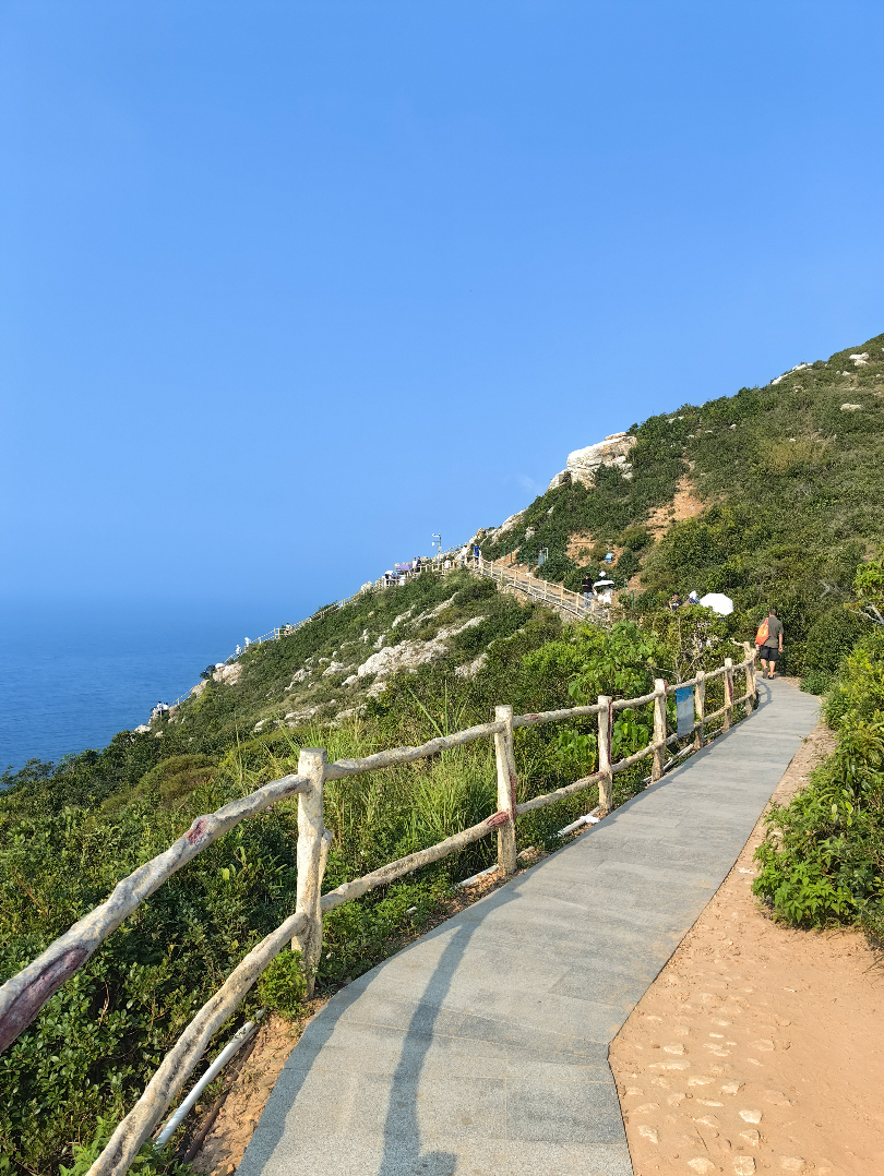 1、上天文台观光车10元,步行的话20分钟到30分钟。观光车终点就是栈道,如果不上天文台直接下到海边,就是一小段平路加大部分下坡。
