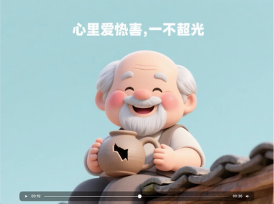 这是一个36秒的视频。总体思路是根据话题生成12句有内涵的短句,然后根据短句结合老爷爷的形象生成12张图片,再用剪映小助手插件生成一个剪映草稿,并且把视频和音乐添加下去,最后去剪映里导出视频。